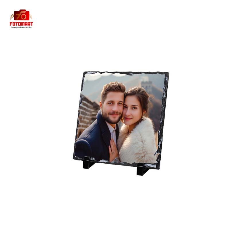 Den lille firkantede fotoskifer er en kompakt og elegant måde at vise dine særlige minder frem på. Den er lavet af natursten med rå, håndmejslede kanter og giver et rustikt, men stilfuldt præg til ethvert foto. Den glatte, belagte overflade er perfekt til sublimeringstryk, hvilket sikrer klare farver og skarpe detaljer. Dens lille firkantede størrelse gør den ideel til skriveborde, hylder eller som en betænksom personlig gave.