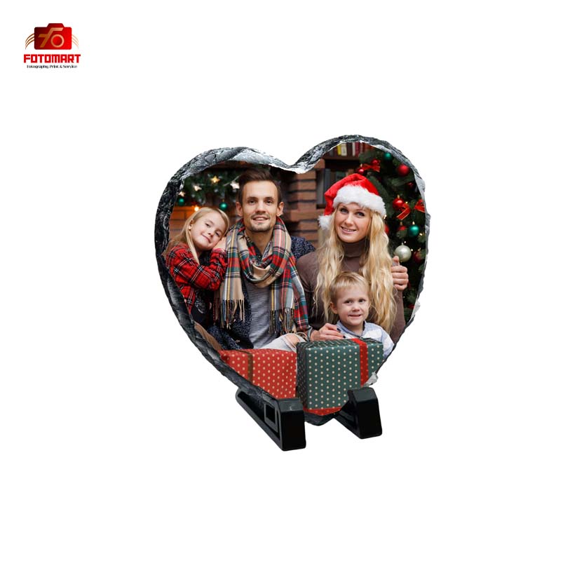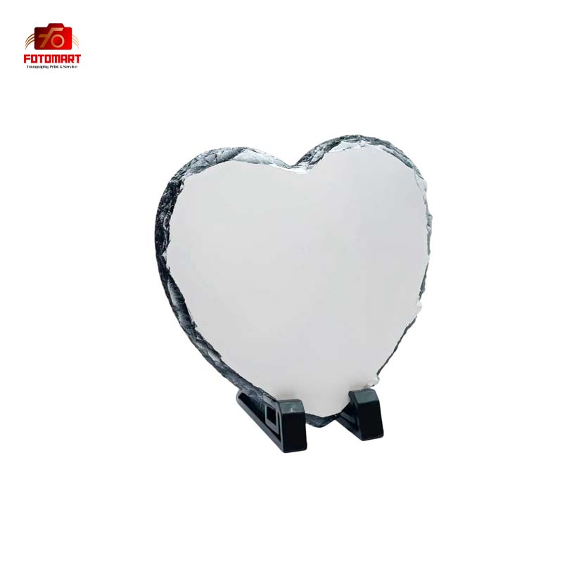 Den lille hjerteformede fotoskifer er en charmerende måde at indfange og fremvise dine mest værdifulde minder på. Den er fremstillet af natursten med håndmejslede, robuste kanter og tilbyder et unikt rustikt præg. Den glatte, belagte overflade er designet til sublimeringstryk, hvilket giver levende farver og skarp billedkvalitet. Dens kompakte hjerteform gør den til et ideelt souvenir, perfekt til skriveborde, hylder eller som en hjertevarm personlig gave.