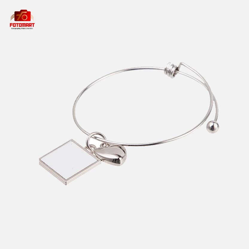 This elegant adjustable photo bracelet is a stylish way to carry your cherished memories wherever you go. Designed with a sleek metal bracelet, it features a round sublimation charm that can be personalized with your favorite photo, logo or design, along with a decorative charm for added beauty. The adjustable size ensures a comfortable fit for all wrist types, making it a perfect accessory for everyday wear or a thoughtful personalized gift.