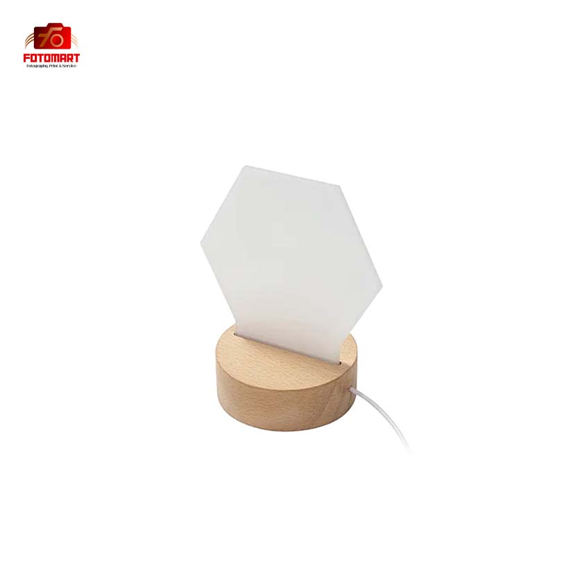 Sekskantet akryl LED-natlampe med træbase