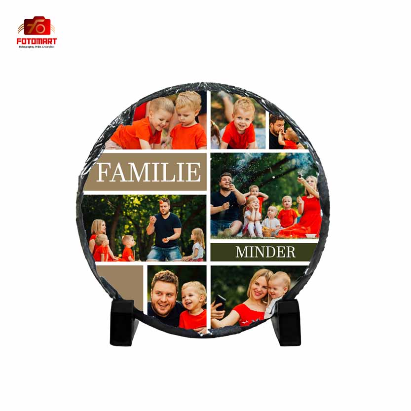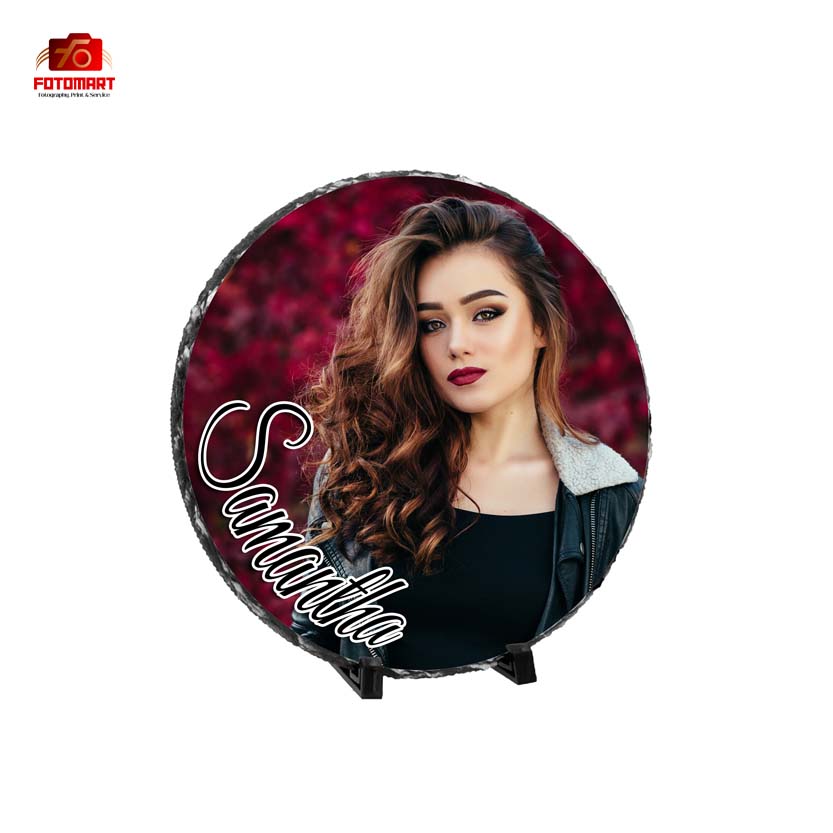 Denne store runde fotoskifer er en fantastisk måde at fremvise dine kære minder på. Den er lavet af natursten med rå, håndmejslede kanter og kombinerer rustik skønhed med moderne personliggørelse. Den glatte, flade overflade er belagt til sublimeringstryk, så dine fotos, kunstværker eller tekst kan overføres i levende detaljer i høj opløsning. Dens unikke runde form får den til at skille sig ud som et dekorativt stykke, uanset om det er derhjemme, på kontoret eller som en hjertevarm gave.