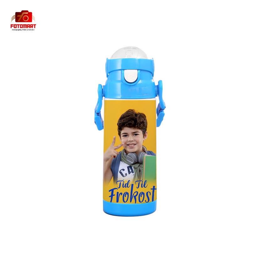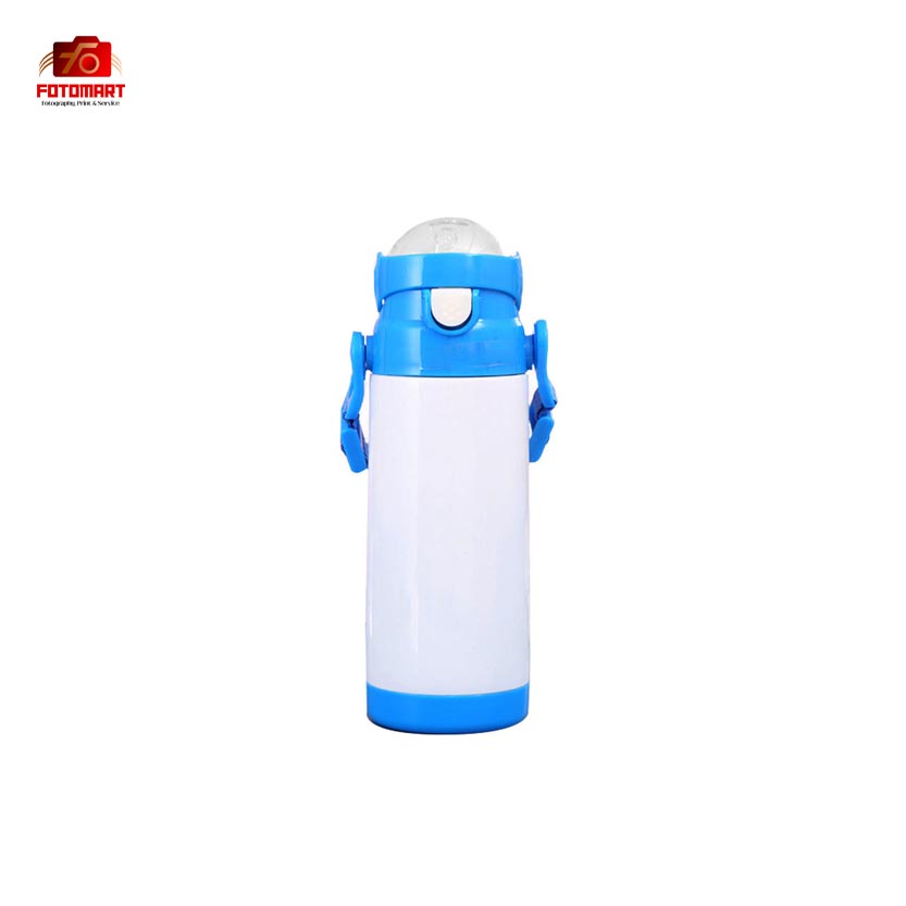 Children’s stainless steel thermos bottle with straw and strap – Blue