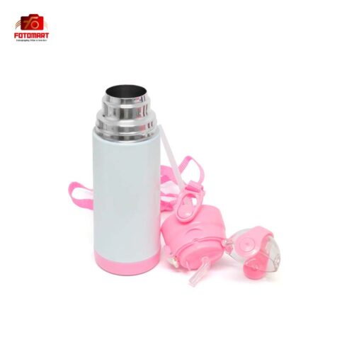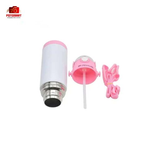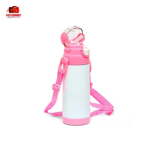 Children’s stainless steel thermos bottle with straw and strap – pink